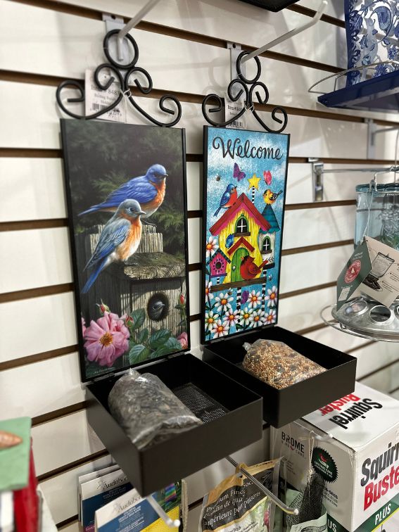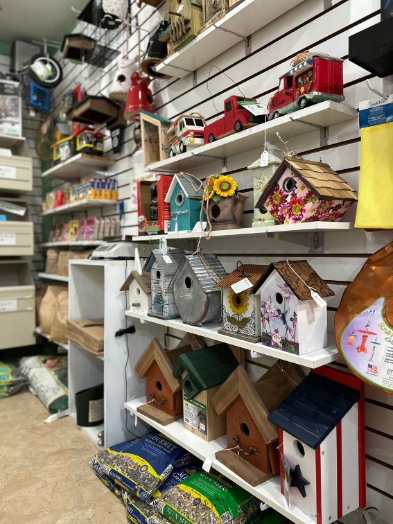 We pride ourselves in having the largest selection of Wild Bird Supplies in the area! In our gift shop you will find a diverse selection of feeders, houses, birdbaths,